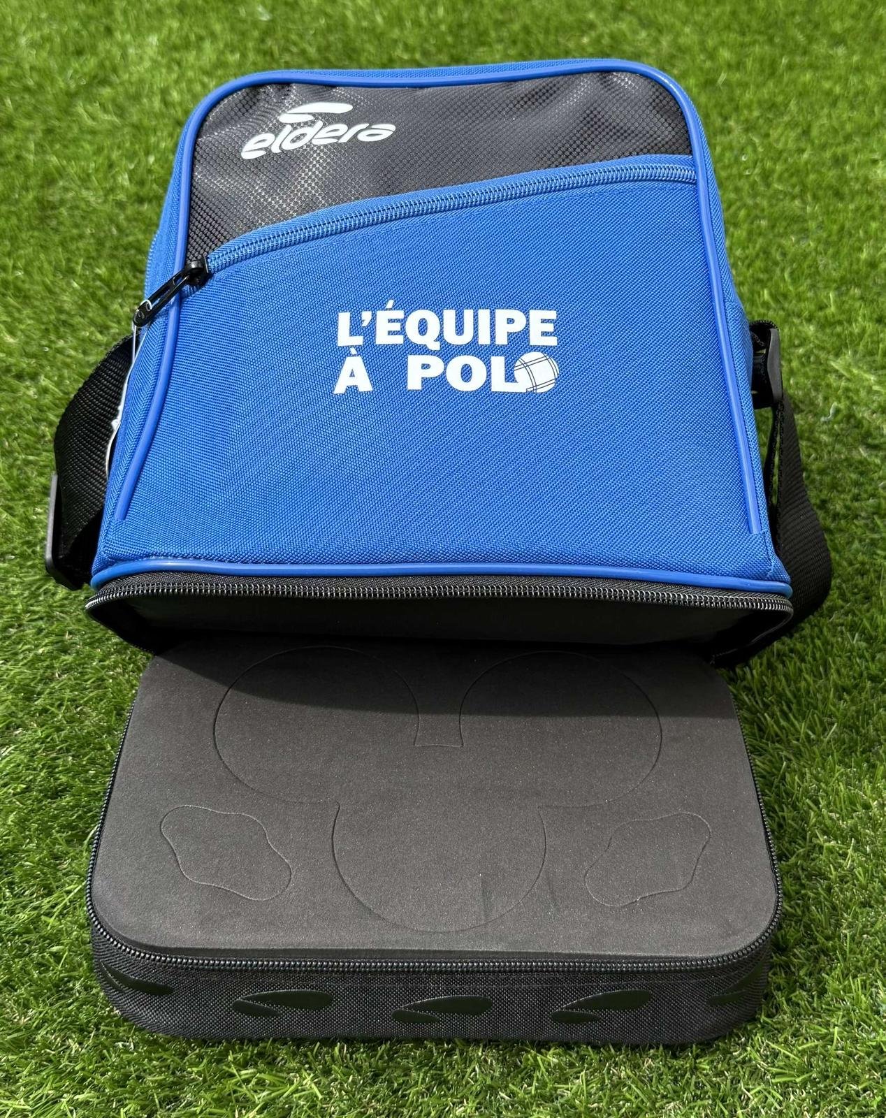 Sac à compartiments en polyester 600D avec grande poche supérieure pour y insérer des objets et compartiment inférieur dédié au rangement des boules. Petite poche avant. Maintien des boules à l'intérieur grâce à la mousse de rangement. Capacité de 3 boules et 2 cochonnets. Poches zippées. Bandoulière ajustable à la morphologie du joueur. Logo printé 3D. Composition 100% polyester.